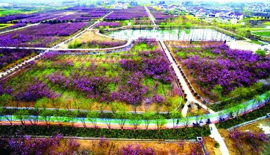 2015年,甘泉街道党工委决定举办首届樱花节,围绕建设“爱情小镇”,在长塘村开启了农村环境整治行动:全村建成了650亩的玫瑰园,对高庄组98户民居建筑风格进行美化;投入600万元建成3公里长的樱花大道,整饬沟渠,铺设黑色道路,沿陈园门前的水库打造亲水慢道,廊、桥、亭、园林,修建在了长塘村人的家门口。
