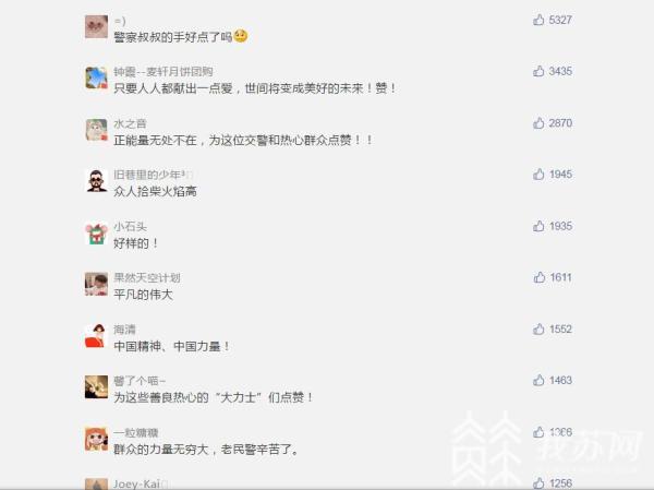 消息播发后,很快被全网传开,无数网友为交警和热心市民点赞。