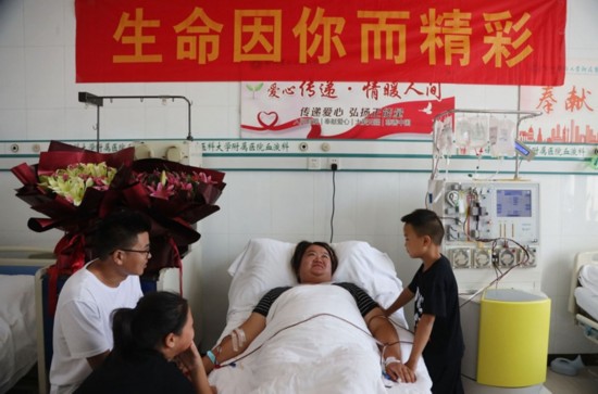 由于患者体重104公斤,需要采集的造血干细胞量大,一直到下午1点多才完成采集。患者今年33岁,有个6岁的女儿,他爱人此前已将感谢信寄到徐州红会,李影的女儿现场读给李影听。