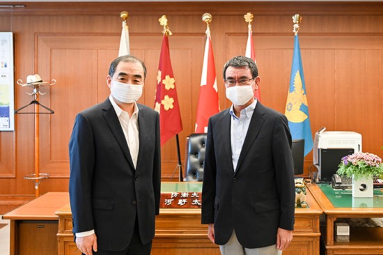 8月18日,驻日本大使孔铉佑会见日本防卫大臣河野太郎。