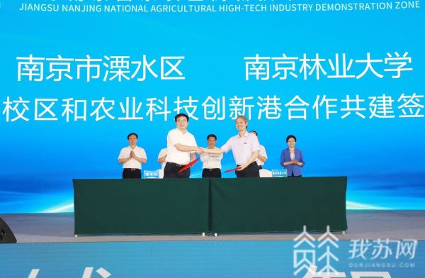 我苏网讯 18日下午,南京林业大学与南京市溧水区人民政府合作共建白马校区和农业科技创新港签约仪式在白马农业国际博览中心举行。