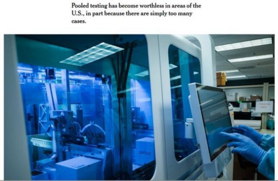 《纽约时报》指出,现在,美国迫切需要更多的检测来控制病毒的传播,“混样检测”原本是一种有效的方法,但在美国的许多地方却显得毫无价值,部分原因就是有太多的人被感染。