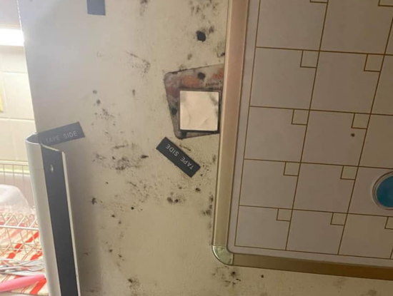 在社交媒体上曝光的照片据称是拍摄于基地宿舍内的走廊和休息室,照片中展示了两张沙发,上面明显有大片的霉菌,而走廊的墙壁上也到处都是霉斑。另外一组照片似乎是某人在宿舍内拍摄,可以看到在衣物、个人用品、墙壁、天花板、浴缸上都有霉菌。