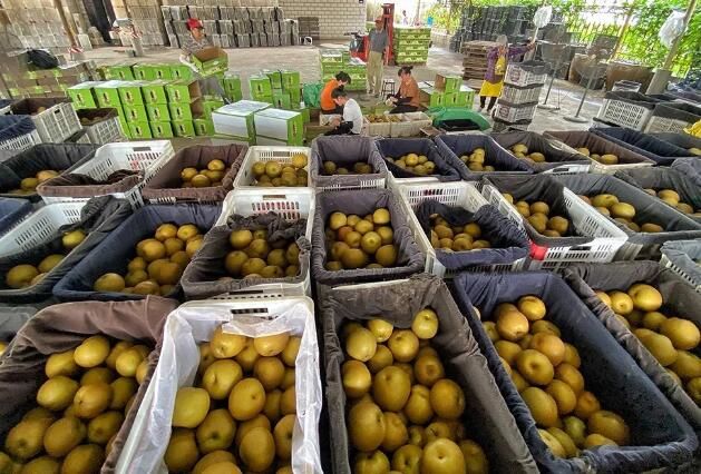 在大公新高果业合作社的包装车间里,工人们正在给梨包纸、装箱。“今年在固定老客户的基础上,合作社积极与上海、福建等地的水果批发市场开展合作,有效缓解上市期果梨积压问题。”合作社负责人卢宝春说,“现在每天果梨的发货量都在20000斤以上。”