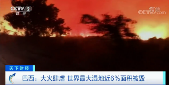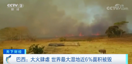 世界上最大的湿地巴西潘塔纳尔湿地持续多日的大火仍在燃烧。巴西政府公布的数据显示,潘塔纳尔湿地近6%的面积,大约8500平方公里的土地,在今年1月至7月发生的火灾中被烧毁,许多生活在这里的濒危野生动物受到严重威胁。