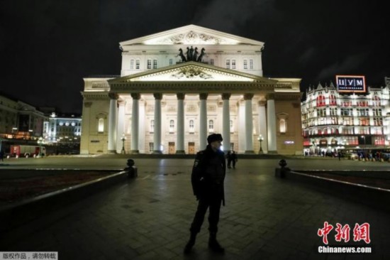 当地时间2017年11月5日,莫斯科遭炸弹威胁电话,超两万人被疏散。图为警方在莫斯科大剧院外驻守。