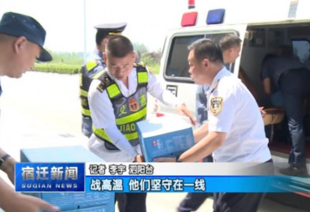 在全市各条主干道、路口,交通一线执法人员也在坚守岗位,爱心企业也行动起来,送去矿泉水等防暑用品,为广大执法人员带来一丝清凉。