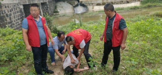 据了解,凌长业、丁晓云、陈永祥三人是黄花塘镇水务站职工。7月26日9时40分许,他们在黄花塘镇旧铺街道开展志愿服务活动时,突然获悉富康桥处有人跳河自杀。3人立即赶到事发地,发现桥下有一白衣女子浮在水面。由于持续降雨,河水暴涨、水流湍急,但3人丝毫没有犹豫,连身上的志愿者红马甲都没脱,就下水救人。他们不顾自身安危奋力游到落水女子身边,凌长业抓住女子右腿,丁晓云用力推女子头及肩部,陈永祥接应,最终合力将女子营救上岸,并进行了初步急救。随后,3人又协助医护人员将该女子抬上救护车送医救治。由于救援及时,处置得当,落水女子脱离了危险。