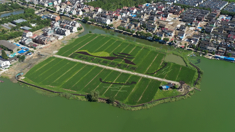 在龙舟基地边上,利用基础农田全新打造的大地景观——“常熟田”也已初现雏形。小编眼中的常熟田在夏日晴空的映衬下,显得更加灵动。站在刚建造好的瞭望塔上,就能俯瞰整个“常熟田”全貌,令人欣喜。