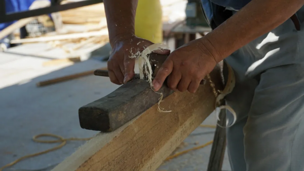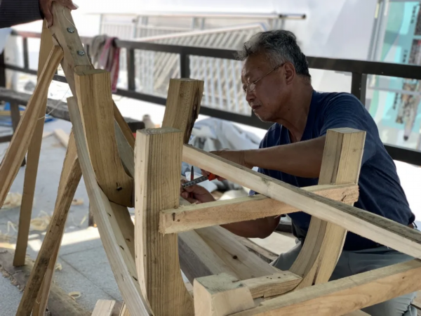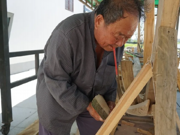 小编了解到,大湖甸龙舟基地里这样的匠人有10来个,他们都是本村75岁以上的老木匠,都擅长龙舟制作。