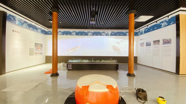 在龙舟基地,工作人员正马不停蹄地进行着最后的布置。全新的湖甸龙舟馆,让人眼前一亮。龙舟馆约有800平方米,主要介绍湖甸龙舟的起源、传说、流程、盛况、发展现状等信息,力求打造一个湖甸龙舟的展示窗口。