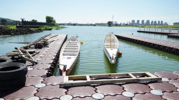 龙舟基地提升改造工程把自然滩涂变成浮动码头,进一步提高安全性能。基地内还种植了广玉兰、海棠、樱花、香樟等树木,提升龙舟基地一年四季景观颜值。