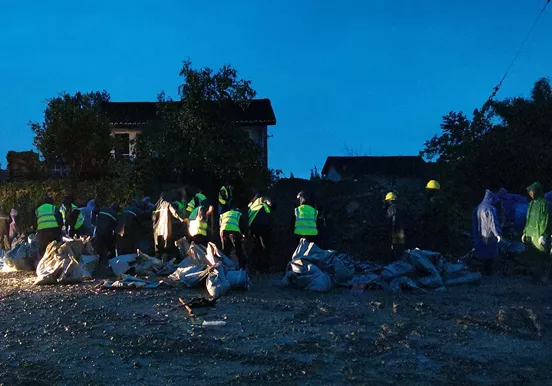 8月17日晚20时,四川乐山再次遭遇暴雨,青衣江、岷江乐山段发生超警超保水位,造成当地村庄房屋被淹。中国电建水电七局乐山项目部抢险救援工作小组调度救灾人员40余人、自卸车10余台、装载车6台分别对高新区部分村落被困村民、养老院老人及看护人员安全转移,截至18日20时已协助消防救援队安全转移3000余人。同时,装备沙袋修复加固河堤。