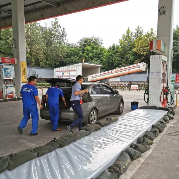 ▲2020年8月19日,洪水即将漫过唐家沱码头阀室,唐家沱码头油库负责人在趸船上长期坚守,带领油库员工搬运防洪沙袋阻挡洪水进入阀室,确保设施设备安全。