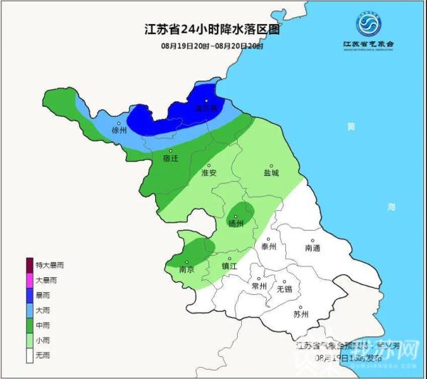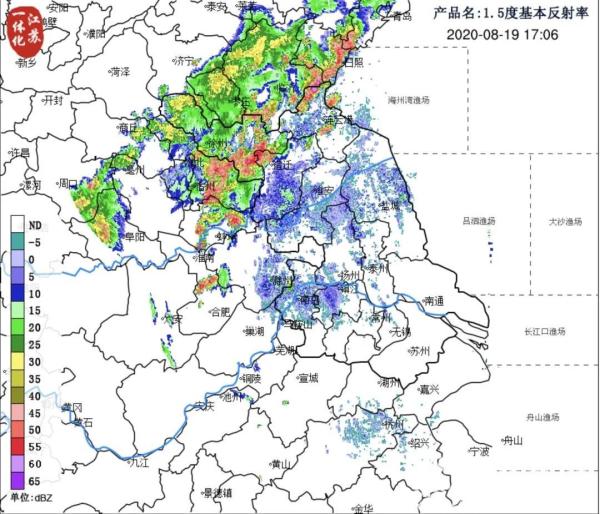 记者从江苏省气象台了解到,8月19日下午3-4点,江苏省西北部地区,出现短时强降水、雷雨大风等强对流天气,徐州市的8个乡镇(街道)降水量达到20mm以上,徐州沛县五段镇降水量达44.7mm,徐州局部出现8级以上雷雨大风,铜山区马坡镇20.8m/s(9级)。