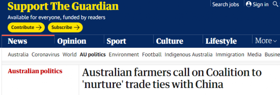 《卫报》称,对于这一调查,澳大利亚总理莫里森18日辩解称,中澳两国之间是“互惠关系”,中国消费者同样“受益于我们提供的高质量产品和服务”。但他也声称,政府“绝不会在任何问题上放弃我们的主权”。