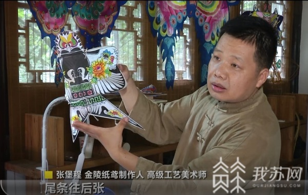 精巧可爱的金鱼、栩栩如生的双飞燕,有着22年纸鸢制作经历的张堡程的风筝里,藏着老南京的密码,即用竹子做骨架,用纸来糊,用木板水印的方式来体现。