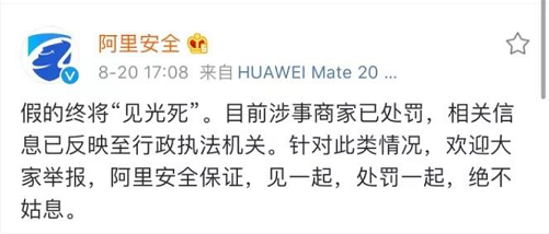 随着淘宝“录取通知书”生意浮出水面,阿里巴巴集团安全部门20日通过官微进行回应:假的终将“见光死”。目前涉事商家已被处罚,相关信息已反映至行政执法机关。