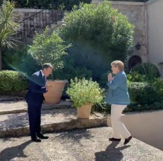 新冠疫情背景下,重要外交场合上不只撞肘或点头致意可以表达问候。这两天,法国总统马克龙在迎接德国总理默克尔时,两人选择使用起“合十礼”互致问候,以保持社交距离。