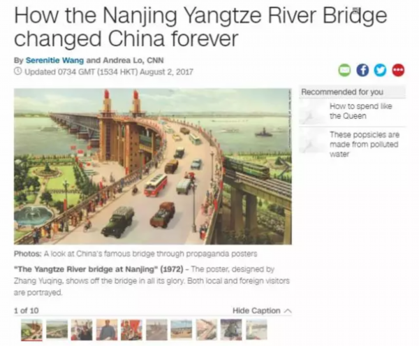 美国有线电视新闻网CNN曾报道南京长江大桥,“中国有世上‘最长和最高’的桥,但是它们都比不上南京长江大桥。”