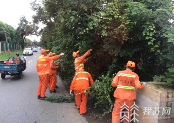 同时,为保障交通平稳,消除驾驶人员的安全隐患,道路沿线的树枝也需及时修整。对此,南京栖霞公路管理站安排巡查人员上路调查,制定计划,在保证安全作业的前提下,安排专业的养护人员根据植物的特点和生长要求,进行修枝剪叶,修剪时适地、适形,按照实用与美化相结合的方针,修剪后的杂物由专车进行清理与拖运,修剪过后的绿化不仅保证了斜坡路段、交叉口等路段的通视要求,更保障了行车安全,同时兼顾公路绿化美观的效果。