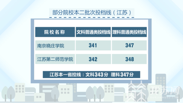金陵科技学院是本二院校中的招生大户,该校今年在江苏共招收2903人,普通类招生代码投档线为:理科347分,文科339分。理科录取线首次达本一线,文科超本一线的有150多人,占录取人数的近40%。录取新生中,理科最高分为365分,录取在计算机科学与技术专业,文科最高分为349分,被会计学专业录取。
