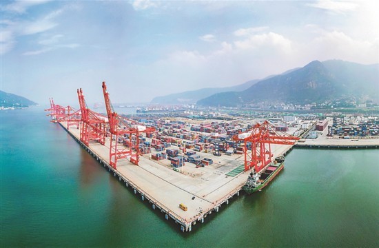 图为江苏自贸试验区连云港片区连云港港集装箱码头。 本报记者 邵 丹摄