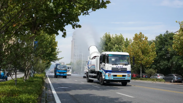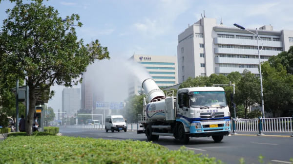 目前,常熟有1辆雾炮车,7辆洒水车,其中,雾炮车主要对对海虞北路、长江路、寺路街、虞景文华等重点路段进行巡回喷雾降尘降温作业,洒水车将对城区70多条主次干道作业。