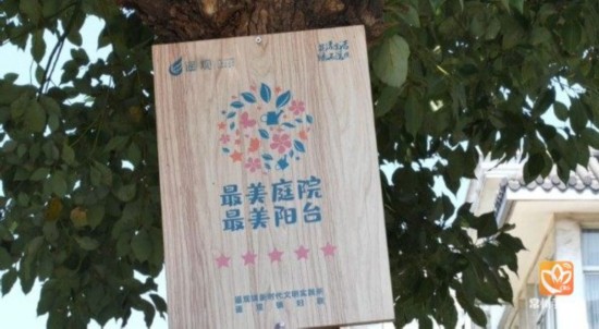 记者唐宁:“这里是印墅社区戴家小院,可以看到我旁边的树干上清晰的写着遥观镇最美庭院,最美阳台的字样。”