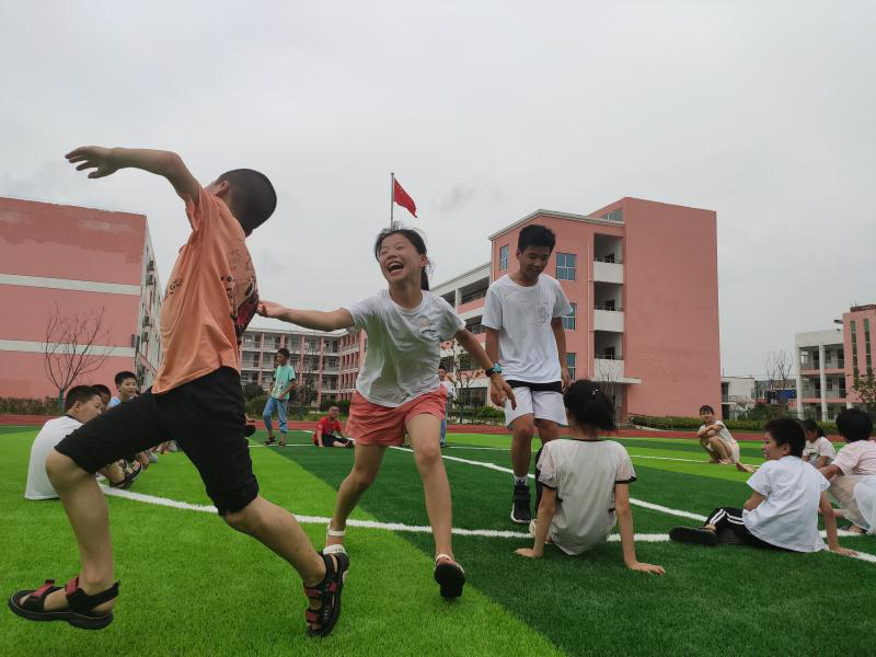 游戏中,孩子们忘记了烦恼,开心地笑着