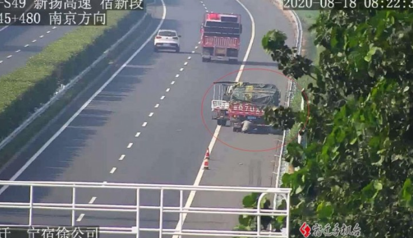 “通过监控发现这是在高速路上面进行修车的行为,随后我们通过查询驾驶员的联系方式,了解到驾驶员是在开车的途中,由于车辆爆胎,他停在应急车道里面等待救援。”