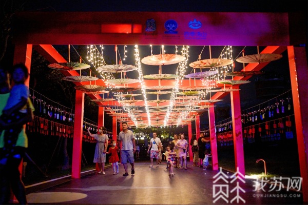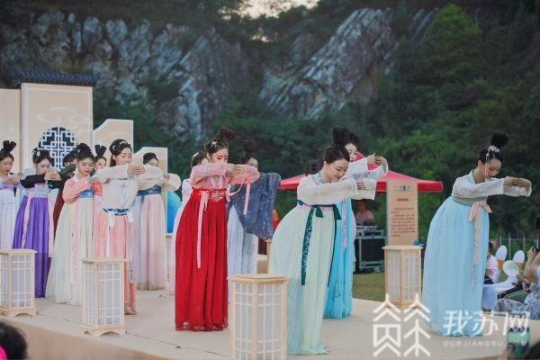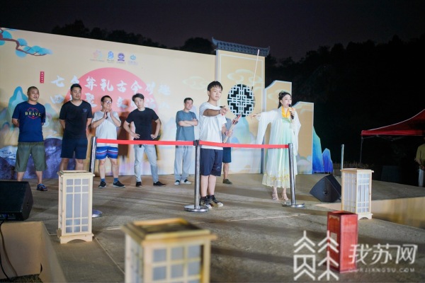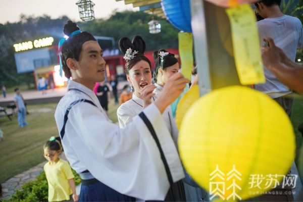 七夕将至,在南京网红打卡点汤山矿坑公园,热闹的古风集市在这里“开张”,身着传统汉服的青年男女们络绎不绝,随着夜幕降临,“攒子涧”瀑布的开启,传统文化与现代艺术融合相得益彰,让这里的游客纷纷点赞。