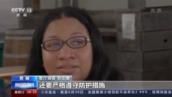 餐厅顾客 狄安娜:我只是希望当我们回到室内就餐时大家都可以及时消毒洗手,还要严格遵守防护措施,不要忘记我们仍然处于严重的疫情中。