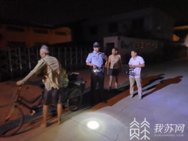 昨天晚上八点钟左右,靖江市公安局生祠派出所接到报警,有位八十多岁的老翁迷路了。民警赶到现场,发现在生祠镇三河村于家埭埭头一企业门前,一位八十多岁的老爷爷推着一辆三轮车,车上堆了满满一车废品,老人满头是汗,还打着赤脚。报警的村民卢金国称他们发现老人推着三轮车在这边转悠了好一会儿,看样子是迷路了,问老人叫什么名字,家住哪里,老人只说自己是马桥的,其余说不清楚。