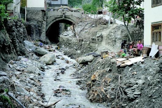 这条岷江上游右岸的一级支流有15余公里长,落差为3730米。“去年泥石流导致岷江改道、高速路中断。”汶川县水务局局长毛旭说,“但由于缺乏资金,目前只完成了疏浚河道。”