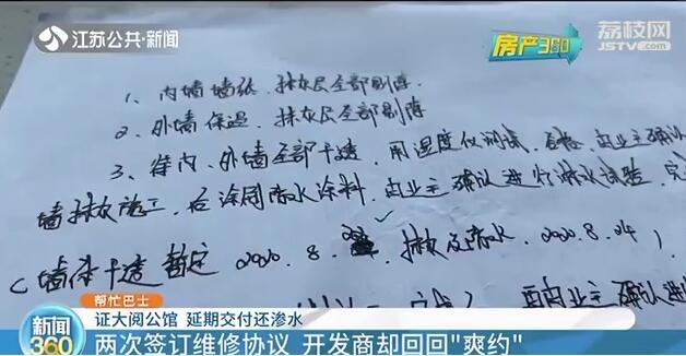 房子延期交付,又遭遇渗水问题,业主的心情可想而知。希望南京证大阅公馆小区的开发商,这次不要再忽悠业主了,加快施工进度,确保维修质量,让业主尽快住进新房。后续维修进展,我们将持续关注。