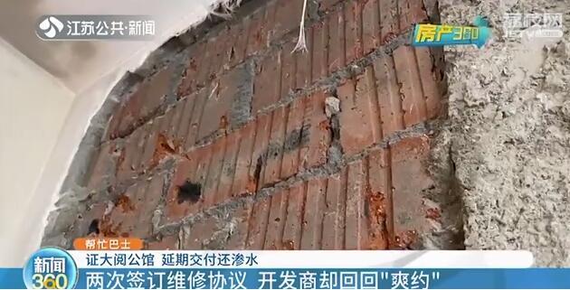 前几天,我们栏目报道了南京市“证大阅公馆”小区开发商延期交房,拒不支付违约金的事情。记者介入之后,很多业主已经陆续拿到了房子。不过,又有业主求助说,她买了精装房准备给儿子当婚房,结果墙体渗水,开发商答应维修却一拖再拖。眼看儿子婚期临近,房子却无法入住。
