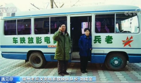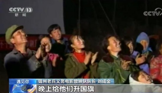 锦州老兵义务电影放映队队长 刘成金:94年开始,农村的电影(放映)队基本都黄了,电影处于低谷了。后来我就琢磨把这个电影(放映)能不能捡起来,在部队学到的这一技之长,成立个义务电影放映队,为老百姓,为偏远山区,把这些喜闻乐见的影片,把这些科技片,送到老百姓家门口。