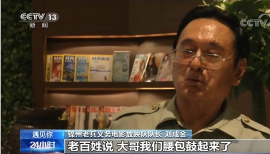 锦州老兵义务电影放映队队长 刘成金:老百姓真正得到收入了,腰包鼓起来了。老百姓说,大哥啊,我们腰包鼓起来了,多亏你放的片,我们离不了你们啊。