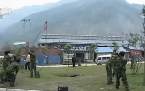 白天,老兵们帮忙抗震救灾,还把自带的面包、方便面、矿泉水送给灾区的群众,晚上,老兵们就在安置点支起大银幕,播放电影。