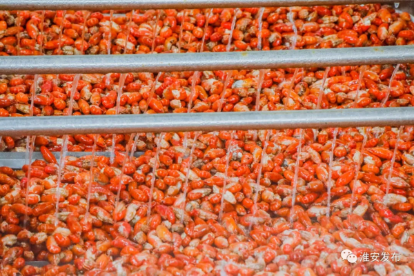 如今,“有滋有味”的盱眙龙虾,让20万盱眙人找到了“金饭碗”,每4个盱眙人中就有1个收入与龙虾有关,涌现出盱眙龙虾股份、红胖胖龙虾产业集团、祥源农业科技、林帝食品等知名龙虾加工企业,龙虾年交易量达10万吨以上,产品远销东南亚、加拿大及澳大利亚等地,仅去年就实现冷冻加工小龙虾年出口129吨,成就了一个百亿级产业链,造就了一批百万虾王、千万虾富。