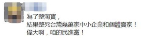 还有网友说,台当局为了整淘宝,结果整死台湾几万家中小企业家和卖家。↓