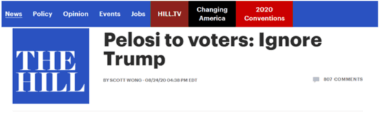但面对特朗普对邮寄投票的反复攻击,佩洛西和其他民主党人却一直试图让公众放心——即使选民进行邮寄投票而不是在投票站投票,他们的选票也将被计算在内。