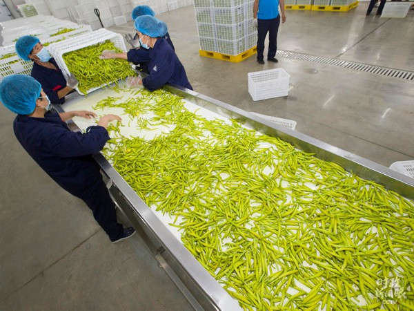 △7月中旬,山西大同黄花进入采摘季。经过清洗、筛选,最终由工人装车推入烘干房。