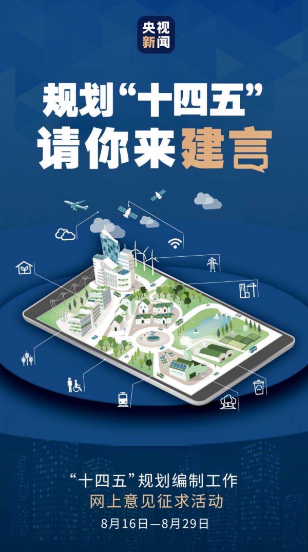 △“十四五”规划编制工作网上意见征求活动正在进行。这是央视新闻推出的征集页面。