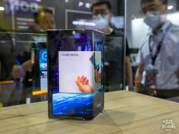 △2020国际显示技术及应用创新展7月在上海举行,这是一款柔屏手机。