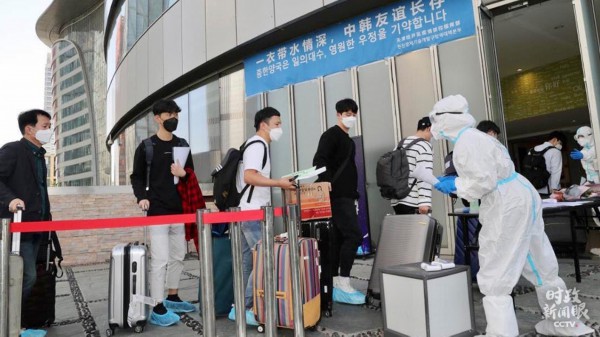 △中韩两国启动人员往来“快捷通道”。这是来自韩国的企业员工抵达天津。