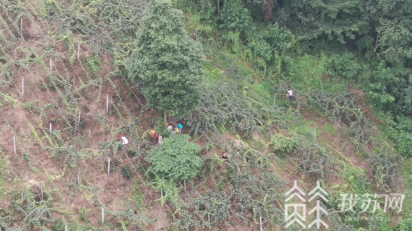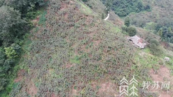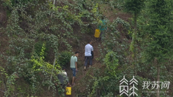 当记者来到名山区的高山猕猴桃园时,只见山岭层层叠叠,陡峭异常,而猕猴桃正是种在这些平均坡度近60度的山坡上。眼下,村民们每天都需要在这样环境下穿梭,采摘。
