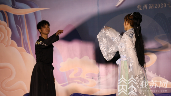这位翩翩舞者名叫黄晓雅,接触汉服已有6年时间。当晚,她放弃了和男友七夕“相会的约定”,在悠扬的古琴声中,黄晓雅和搭档为台下的观众演绎了“卷上珠帘总不如,春风十里扬州路”的经典爱情故事。直到表演结束后,她还沉醉其中。“大家可能觉得七夕是情侣间的节日,对于我来说,它是我对汉服热爱的表达。”黄晓雅说。