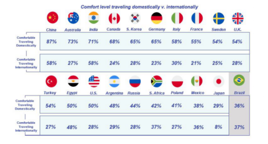 益普索网站民调报告称,这种情况进一步说明,新冠大流行应对所产生的负面声誉可能对近期旅游业造成更大损失。未来几年旅行似乎大多发生在各国境内,但也有旅行者愿意跨越国境前往地理位置上接近的国家旅行,同时也更可能前往已在新冠大流行方面取得长足进展的国家。